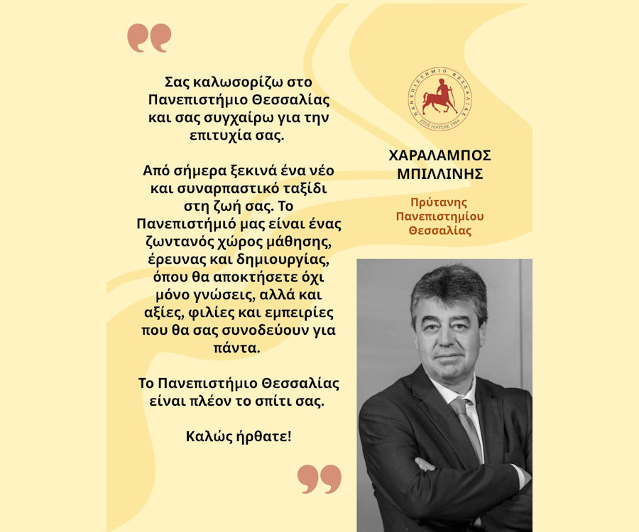 Το Πανεπιστήμιο Θεσσαλίας καλωσορίζει του νέους φοιτητές του.