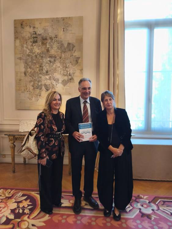 Η τελετή έκλεισε με την παρουσίαση του δίγλωσσου επιστημονικού τόμου «Προκλήσεις για τις παράκτιες και θαλάσσιες περιοχές στο πλαίσιο της κλιματικής αλλαγής – Ανταλλαγή εμπειριών μεταξύ Ελλάδας και Γαλλίας», από τον Αναπληρωτή Καθηγητή Ανέστη Γουργιώτη, ο οποίος τιμήθηκε πρόσφατα από τη Γαλλική Δημοκρατία με τον τίτλο του Ιππότη του Τάγματος των Ακαδημαϊκών Φοινίκων (Chevalier dans l’Ordre des Palmes Académiques) για τη συμβολή του στην ενίσχυση της ελληνογαλλικής επιστημονικής συνεργασίας.